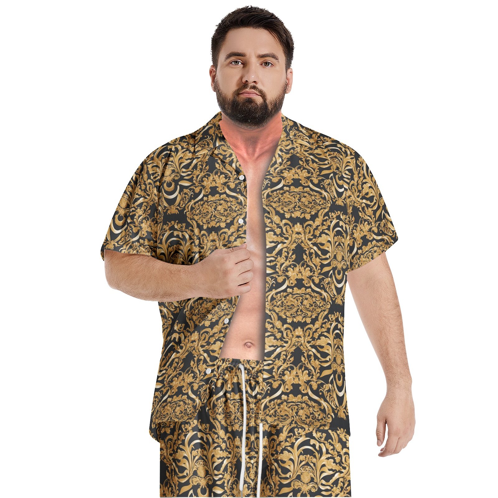 Stylish Design: The men hawaiian shirt sets designed with minimalist design style, classic regular fit, button down and drawstring closure.
