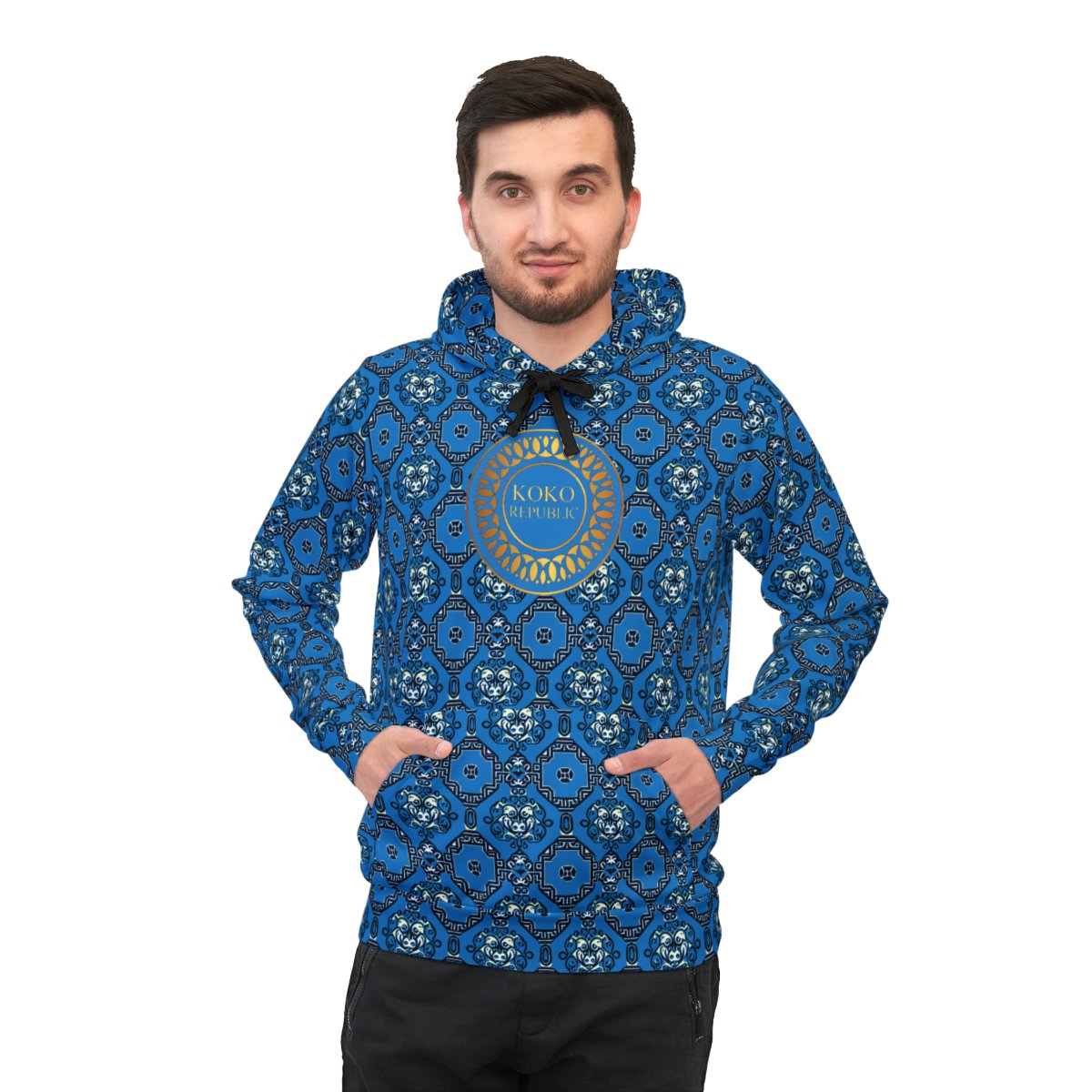 These unisex athletic hoodies come with a 95% recycled polyester and 5% spandex fabric blend that is as comfy in the gym as it is on a casual day out. Each hoodie comes with a flat black drawstring, a sewn-in size and care label, as well as a custom-printed label on the inside of the waistband.