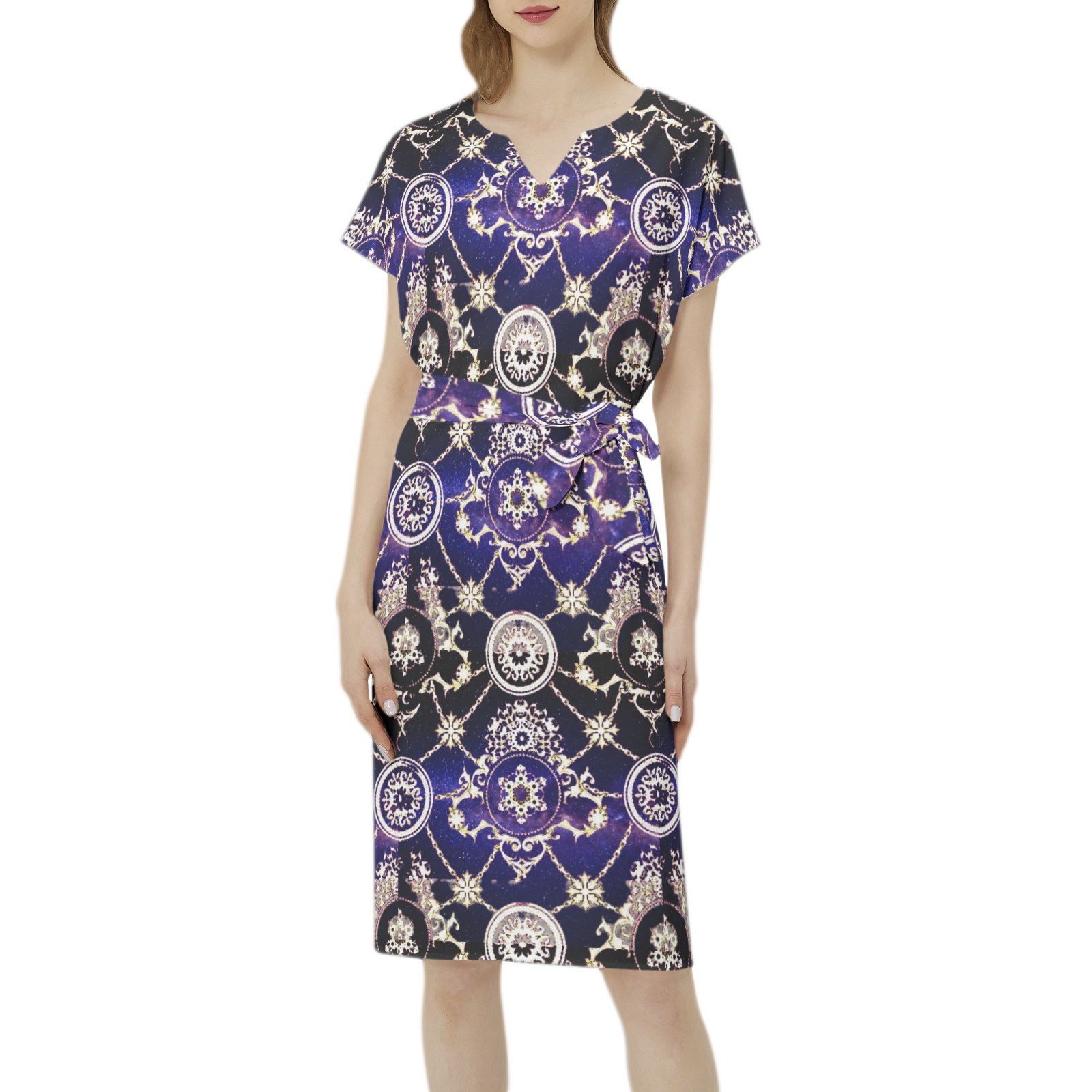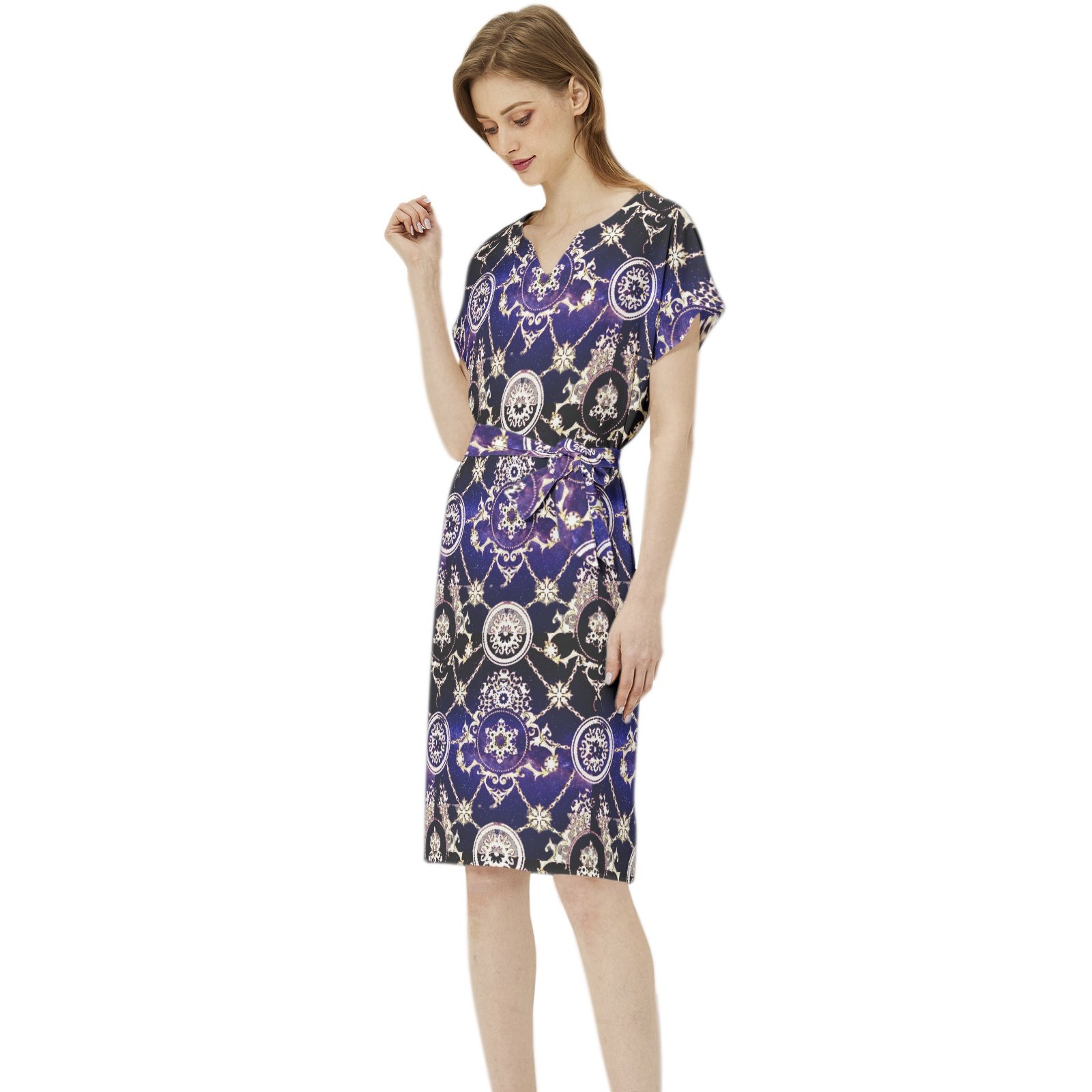 Batwing sleeve, Notched neck, Belt tie waist, Straight hem, Tunic, Casual dress