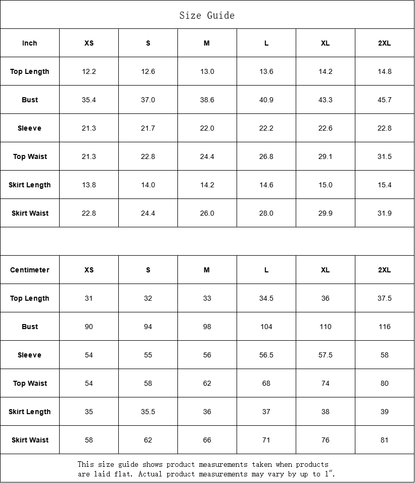 | Skirt Length | 35 | 35.5 | 36 | 37 | 38 | 39 |