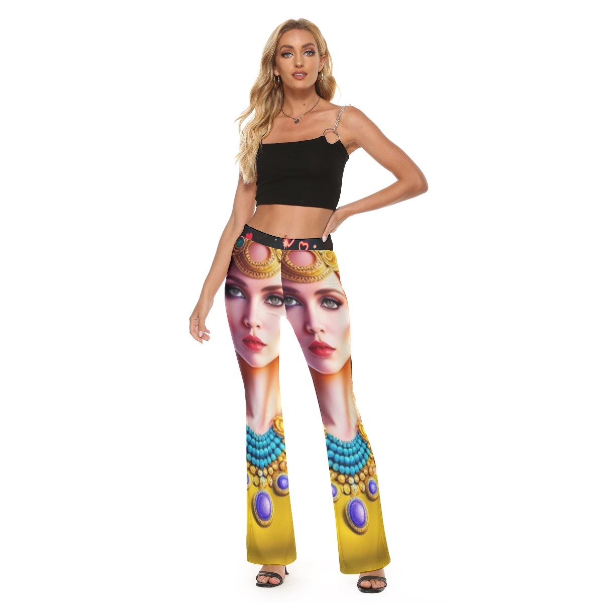 • Elastic waistband,flare out at the hems