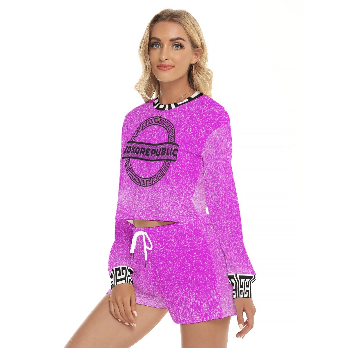 - Elastic waist closure, long sleeves, short pants, crew neck