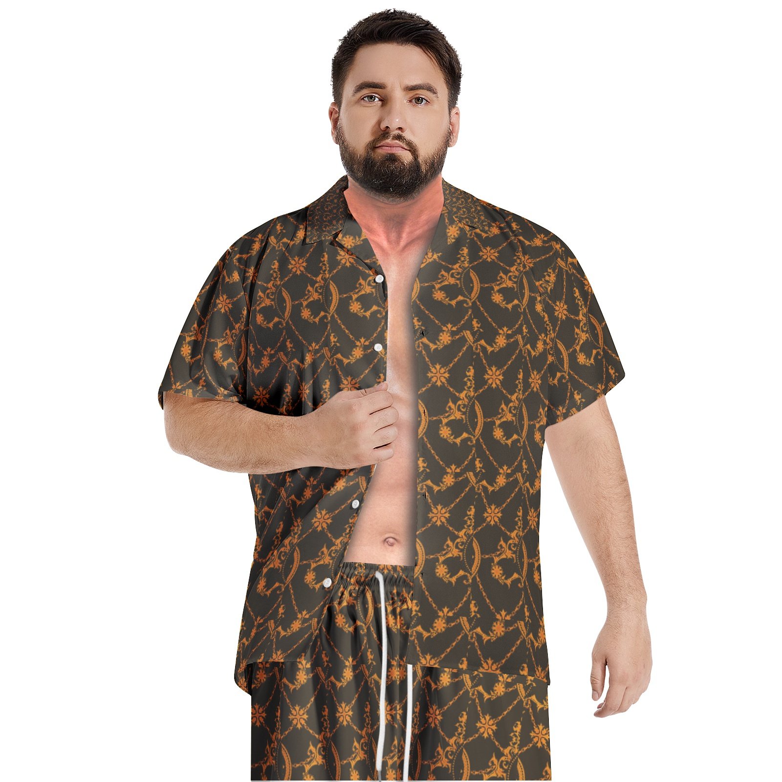 Stylish Design: The men hawaiian shirt sets designed with minimalist design style, classic regular fit, button down and drawstring closure.